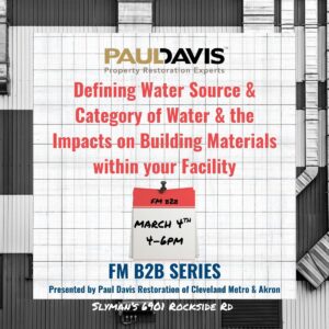 Facility managers face every imaginable catastrophe impacting their facilities on a daily basis with water intrusions being the most common issue. Defining the water source and specifically the category of water (Level 1, 2 or 3) dictates the severity of containment, extraction and the impact on construction materials within your facilities. The key is having a water intrusion plan to properly address the water loss. The importance of proper containment and using technology (thermal imaging, psychometric and moisture readings) to assess proper drying techniques throughout mitigation and to coordinate responsive reconstruction plans when dealing with operations and facility management.
